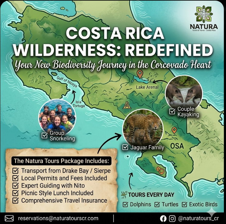 Corcovado: The Wild Heart of Costa Rica and the Story of “Nito” Guide, Corcovado National Park is not just a tourist destination; it is, according to National Geographic, “the most biologically intense place on Earth in terms of biodiversity.” Located on the remote Osa Peninsula, this sanctuary represents Central America’s last wild frontier. At Natura Tours & Travel, we believe that to understand the magnitude of this paradise, it is not enough to look at the trees; you must listen to those who live and breathe this forest.